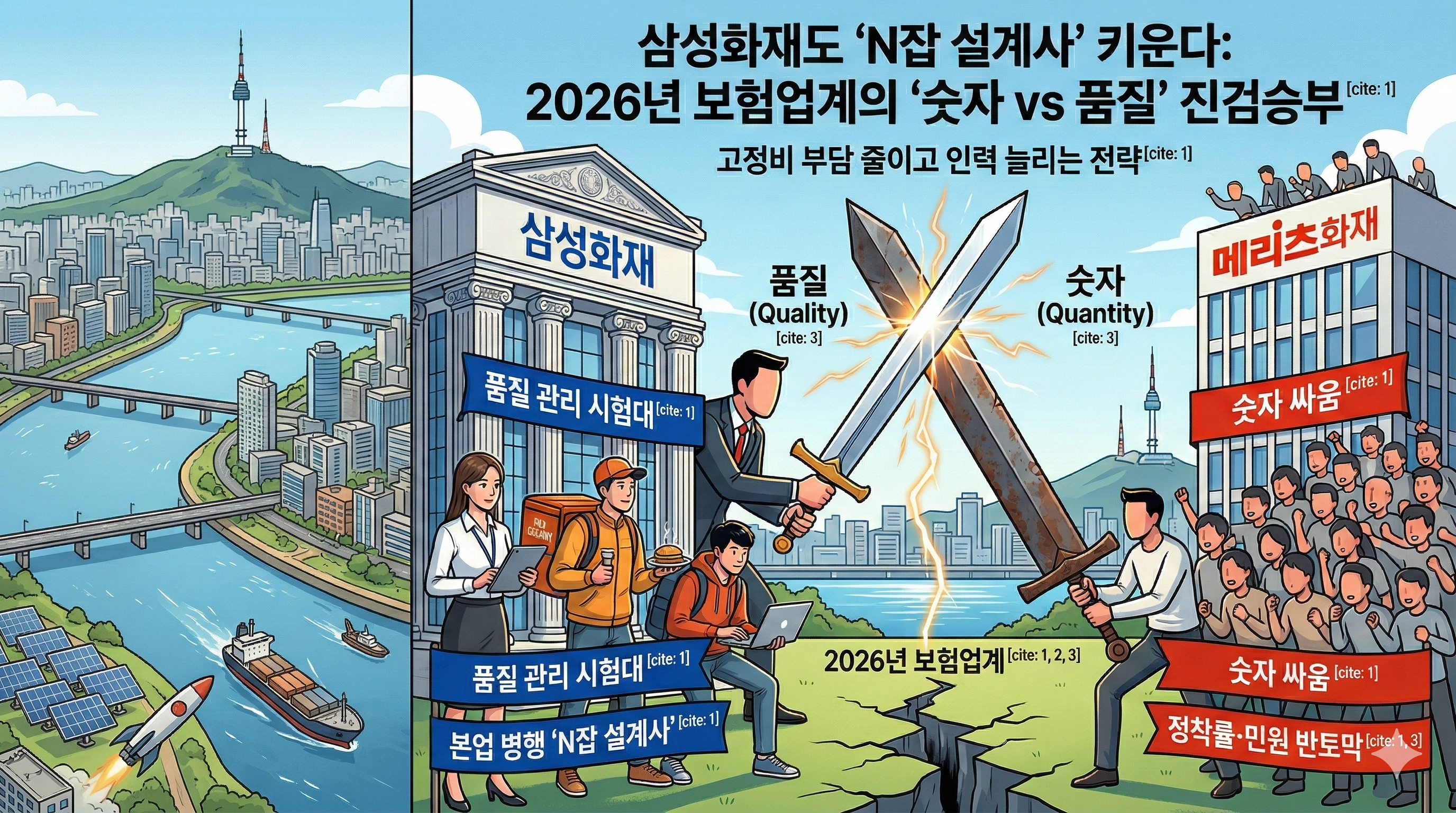 2026년 대한민국 보험 시장에 거센 변화의 바람이 불고 있습니다. 업계 1위인 삼성화재가 지난달 본업을 유지하면서도 보험 영업을 할 수 있는 ‘N잡 크루’ 조직을 전격 출범시켰기 때문입니다. 이제 보험 설계사는 전업의 영역을 넘어 직장인, 주부, 프리랜서 등 누구나 도전할 수 있는 ‘N잡’의 대표 주자가 되었습니다. 하지만 급격한 인력 확대 뒤에 숨겨진 품질 관리의 숙제는 보험사가 반드시 넘어야 할 시험대가 되고 있습니다.