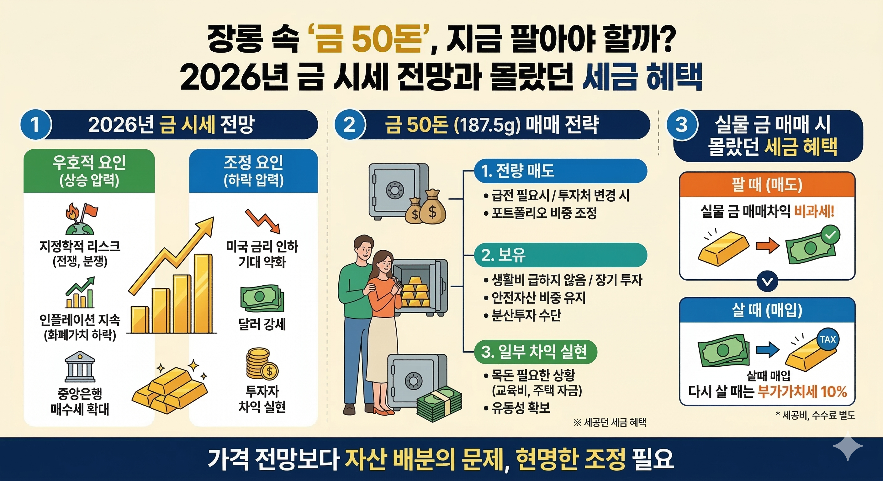 장롱 속 금 50돈을 처분할지 말지는 향후 금값이 10% 더 오를지 내릴지의 문제라기보다, "이 돈이 지금 우리 가족에게 어떤 의미인가"의 문제입니다.