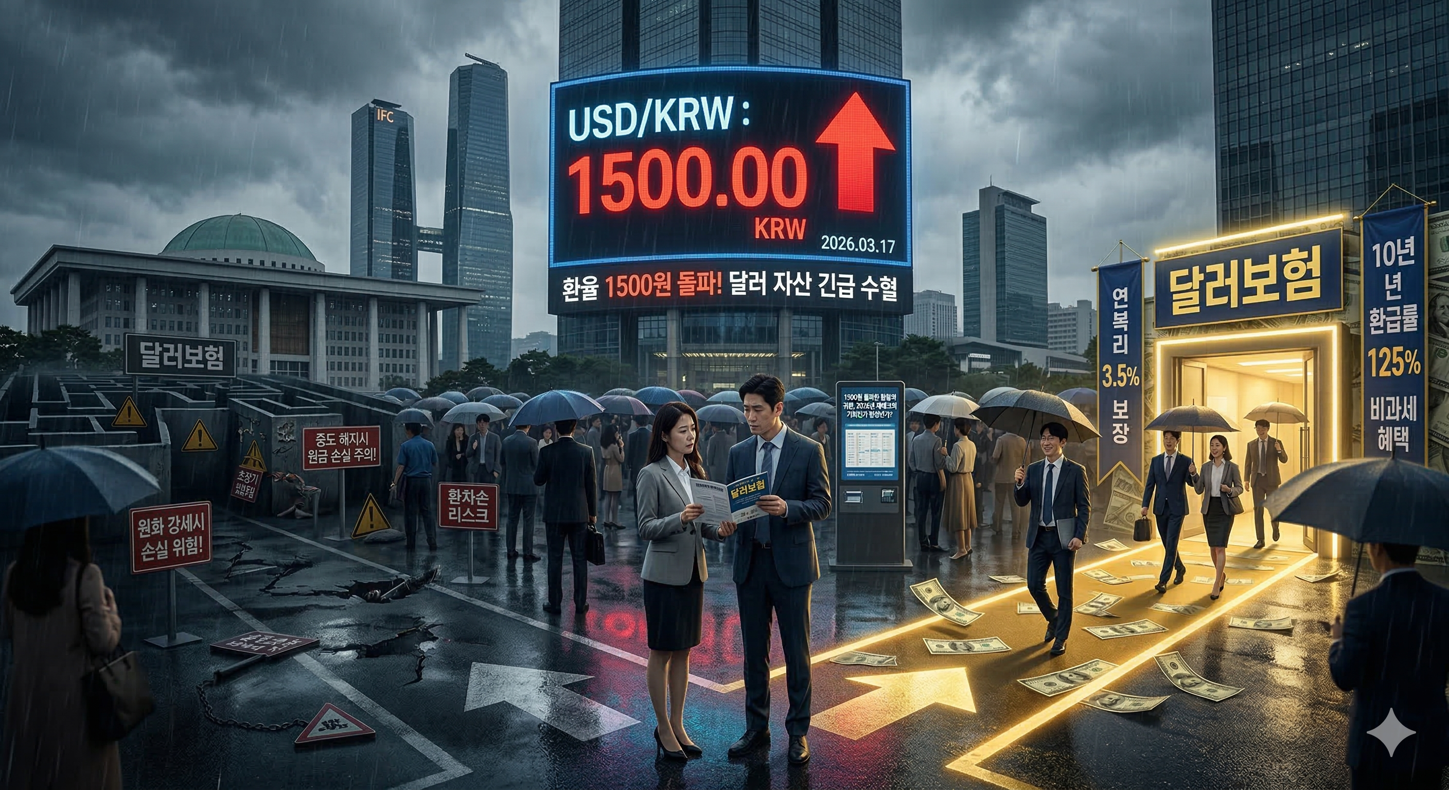 2026년 3월, 대한민국 금융 시장이 다시 한번 요동치고 있습니다. 중동발 지정학적 리스크가 심화되면서 원·달러 환율이 심리적 저지선이었던 1500원을 넘어섰기 때문입니다. 환율이 치솟자 한동안 숨을 죽였던 '달러보험' 마케팅이 다시 고개를 들고 있습니다.