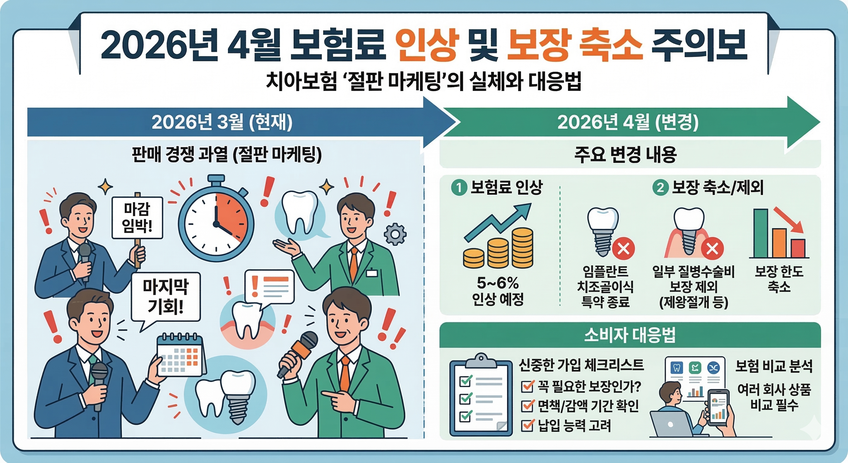 2026년 4월 보험료 인상 및 보장 축소 주의보: 치아보험 '절판 마케팅'의 실체와 대응법