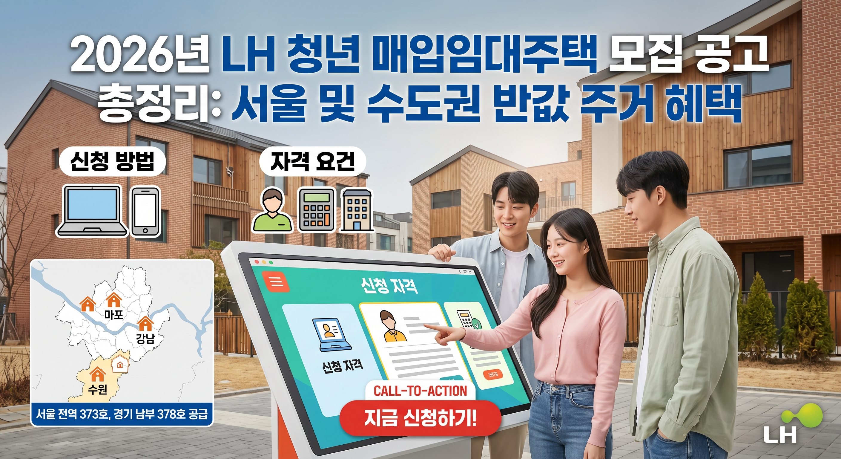 요즘처럼 주거비 부담이 큰 시기에 청년들에게 단비와 같은 소식이 전해졌습니다. 한국토지주택공사(LH)에서 2026년 제1차 청년 매입임대주택 예비입주자 모집을 시작했다는 소식입니다. 특히 이번 모집은 서울과 경기 등 수도권을 중심으로 대규모 물량이 나와 있어 많은 청년의 관심이 집중되고 있습니다. 이번 글에서는 2026년 LH 청년 매입임대주택의 구체적인 신청 자격, 지역별 일정, 그리고 놓쳐서는 안 될 핵심 정보들을 상세히 살펴보겠습니다.
