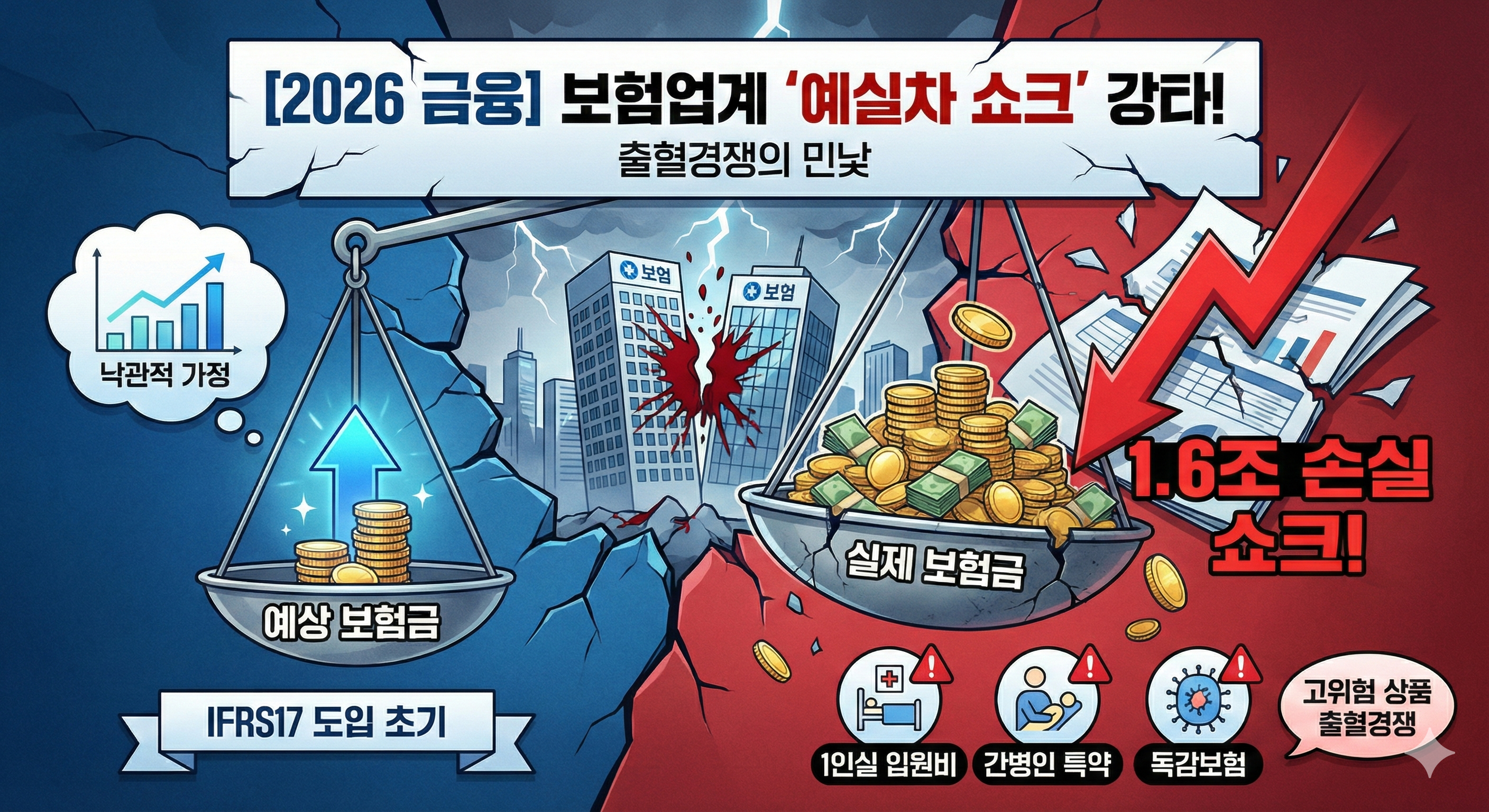 2026년 초, 대한민국 보험업계가 커다란 '부메랑'을 맞았습니다. 이름도 생소한 '예실차(예상과 실제의 차이) 쇼크'가 상장 보험사들을 덮치며 1.6조 원이라는 막대한 손실을 기록한 것입니다. 화려한 광고와 높은 보장 한도를 내세우며 고객을 유혹했던 보험사들이 정작 자신들이 짠 '계산기' 수치에 발등을 찍힌 셈인데요. 오늘은 이 사태의 원인과 배경, 그리고 서울에 사는 50대 남자의 시각에서 본 보험업계의 씁쓸한 현실을 짚어보겠습니다.