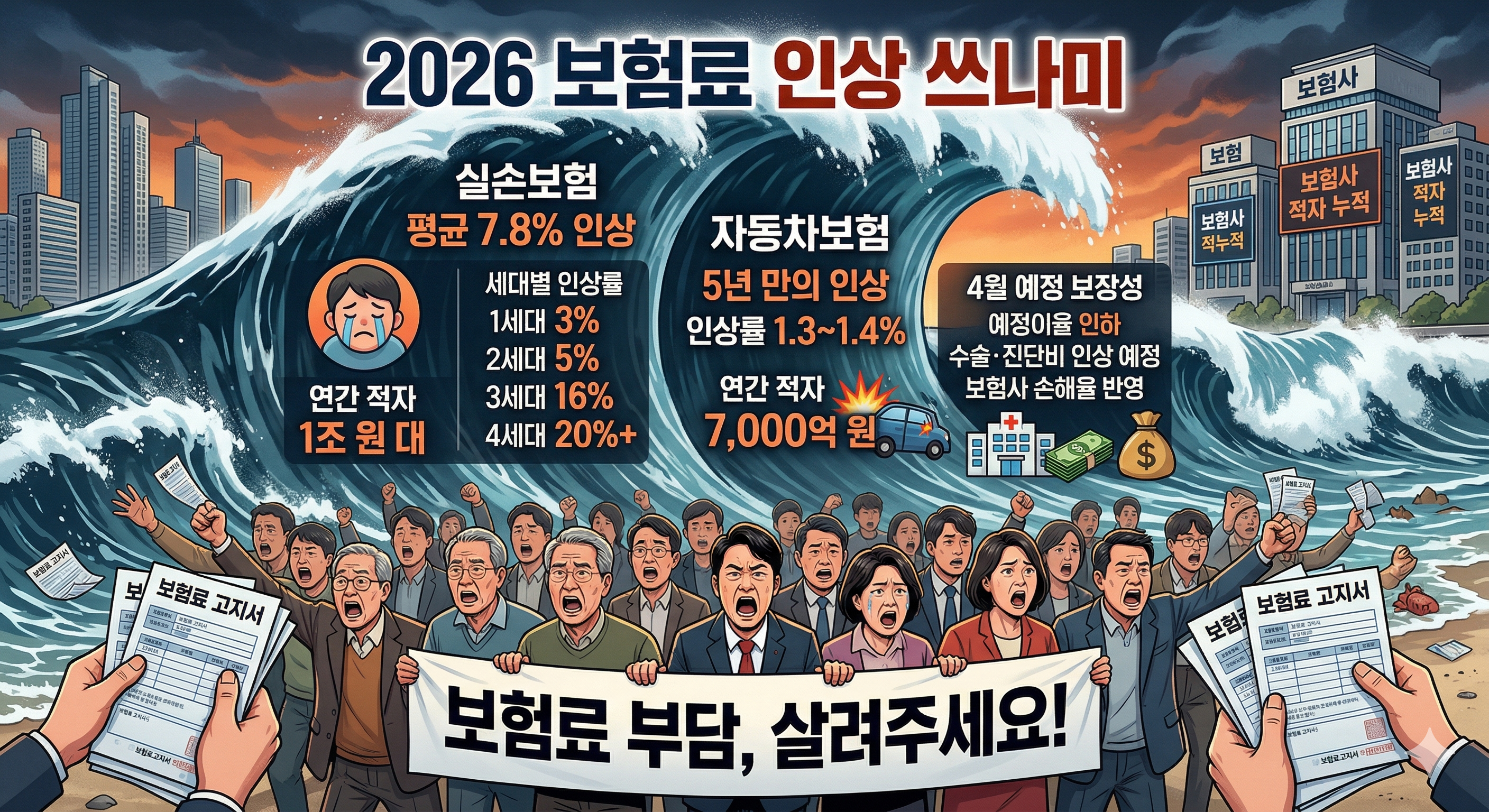 정부도 "정책적 지원이 필요하다"는 보험사의 말만 듣지 말고, 실제 보험금이 어디서 그렇게 새고 있는지, 과잉 진료는 왜 못 잡는지 더 엄격하게 관리해 줬으면 좋겠습니다. 서울에서 애 키우며 사는 게 갈수록 태산입니다. 식탁 물가에, 공공요금에, 이제는 보험료까지... 2026년은 정말 우리 세대 가장들에게 혹독한 해가 될 것 같네요.